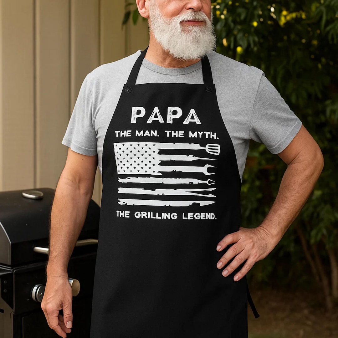 Whether you're grilling up steaks for a summer cookout or flipping burgers for a backyard party, our Papa Grill Apron is the perfect addition to your grilling gear. It also makes for a great birthday, Christmas, or Father's Day gift for the special man in your life - your husband, dad, grandfather, or any grilling guy!