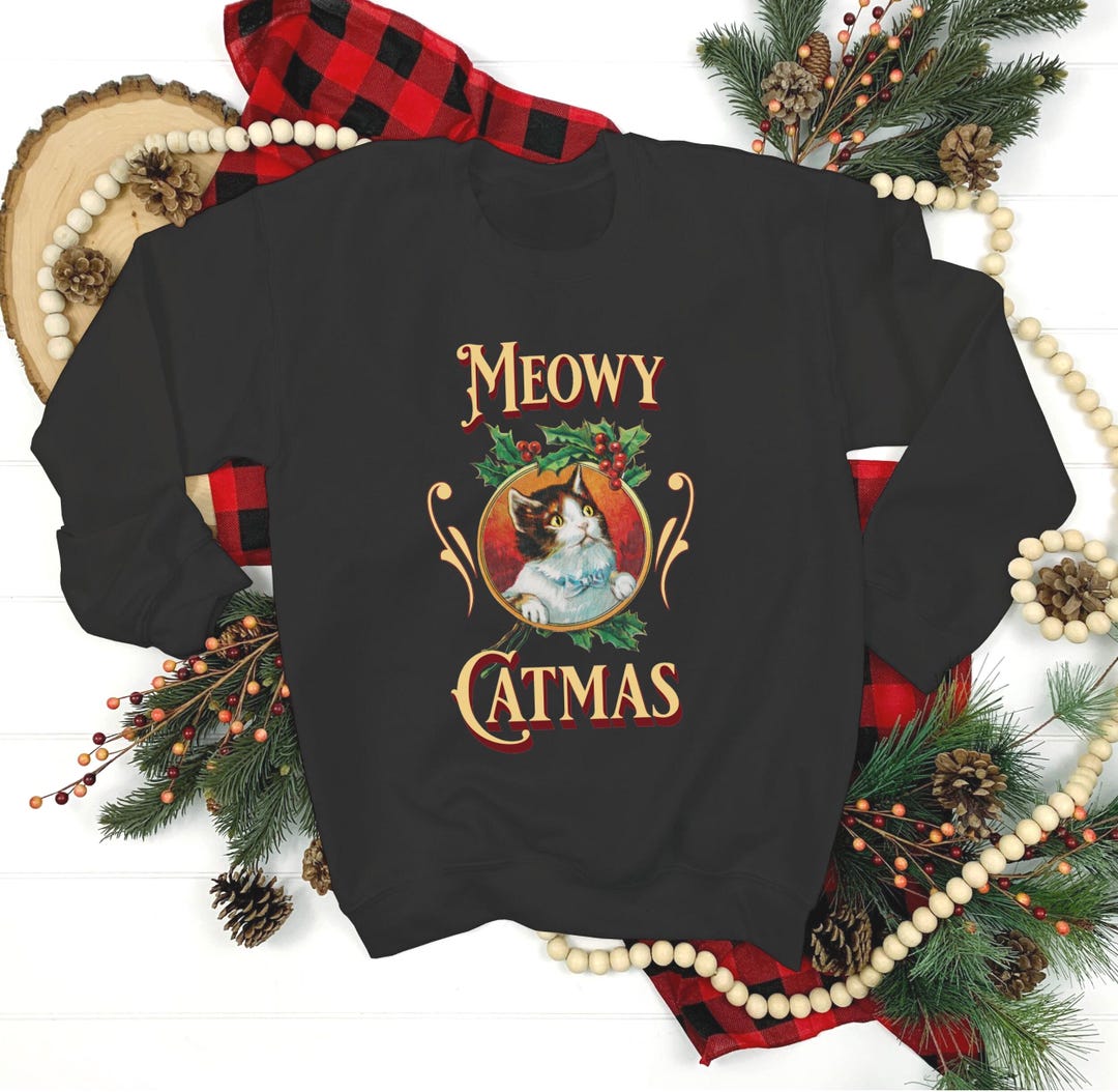 Meowy Catmas Christmas Sweatshirt Retro Christmas Shirts Vintage Graphic Sweatshirt Crewneck Cat Lover Gift Cute Christmas Sweater by 3DCandleCreations