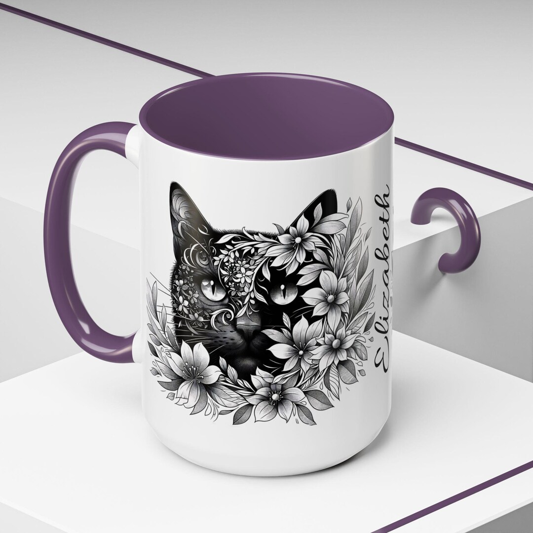 Personalized Floral Cat Accent Coffee Mug, Custom Name Mug, Unique Gift for Cat Lovers, Pet Memorial Mug, Drinkware for Home
