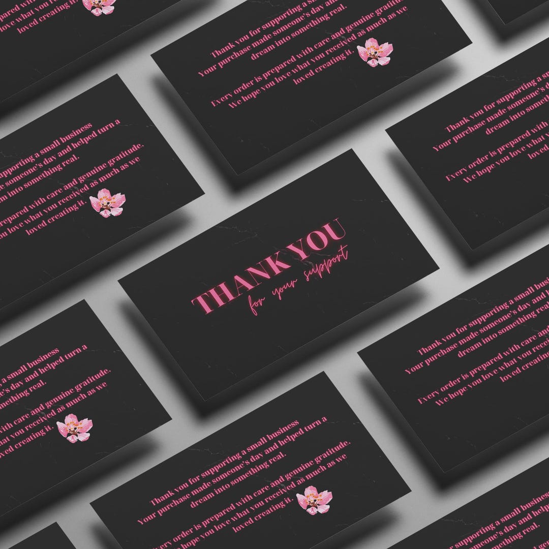 Thank You Business Cards Thank You for Supporting Small Business Cards Pink Black Order Inserts Double Sided Cards for Customers