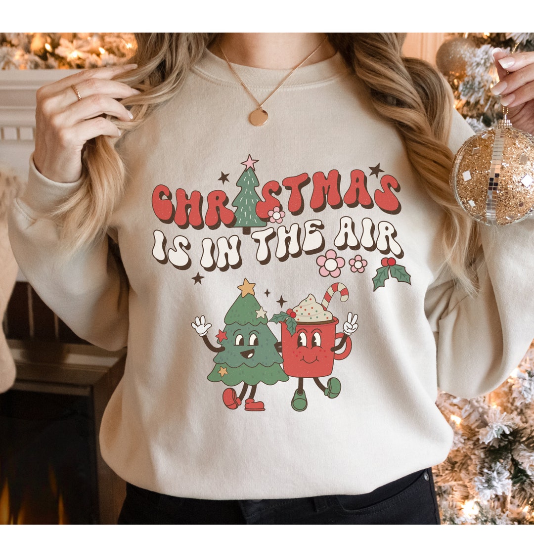 Christmas is in the Air Sweatshirt Retro Christmas Shirts Vintage Graphic Sweatshirt Crewneck Tree & Coffee Cute Christmas Sweater by 3DCandleCreations