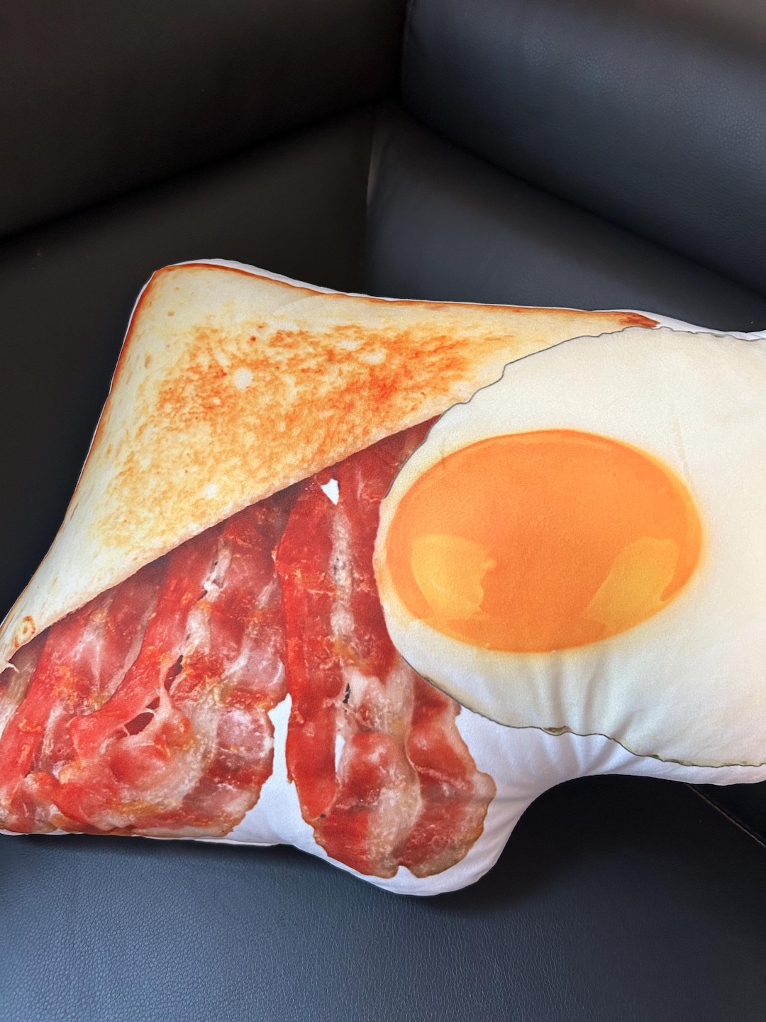Egg, Toast & Bacon Pillow – Fun Breakfast-Themed Decorative Pillow for Kitchen, Home, and Kids' Rooms!