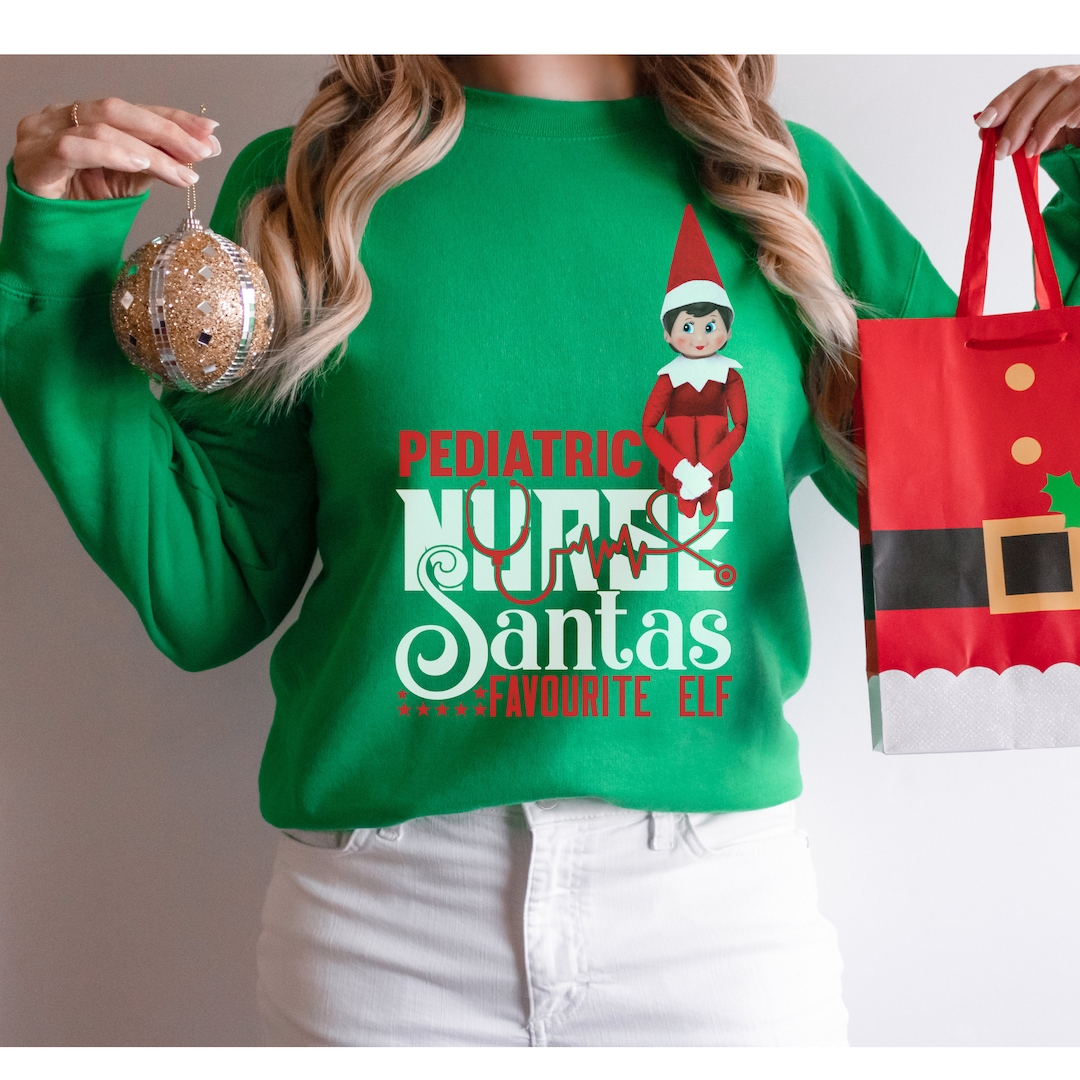 Pediatric Nurse Christmas Sweatshirt Santas Favorite Elf Crewneck Sweatshirts Funny Nurse Gift Gifts Nursing School Grad Children Nurse