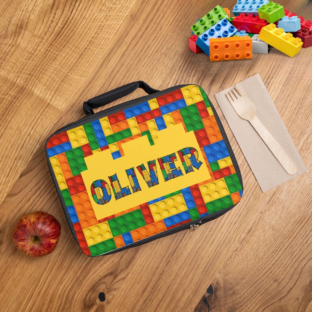 Personalized Building Block Lunch Bag: Custom Name, Insulated Kids Lunchbox by 3DCandleCreations