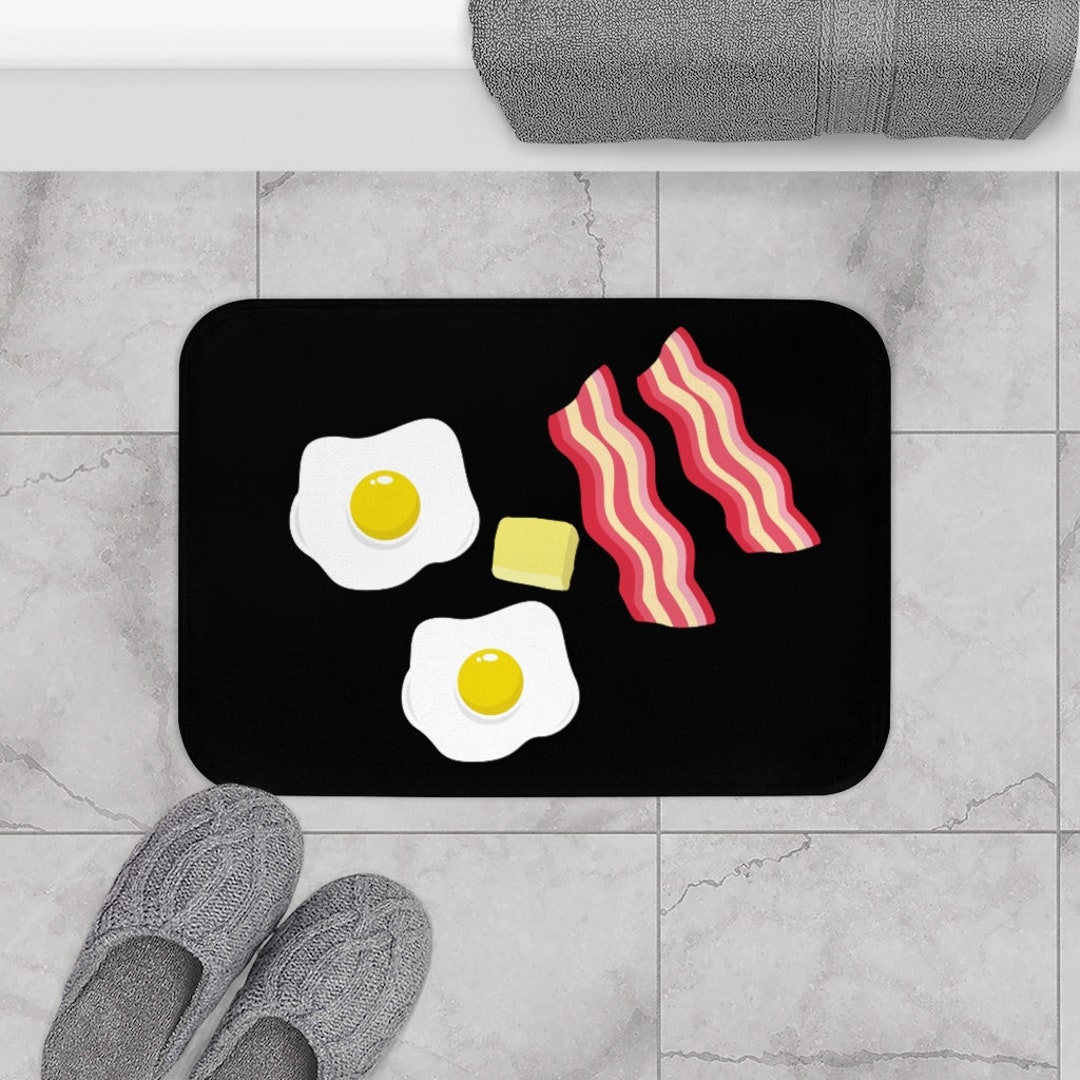 Breakfast Skillet Bath Mat Fried Egg Mat Bathroom Mat Floor Mat Bacon Floor Pad Frying Pan Shower Mat Bathroom Decor Eggs and Bacon Bathroom