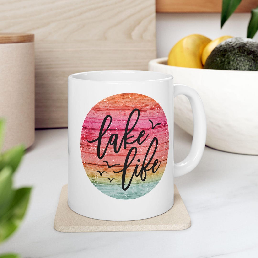 Warm your soul with a nice hot beverage in this perfectly sized 11-ounce "Lake Life" ceramic mug. It is the perfect anytime gift for someone who enjoys being at the lake.