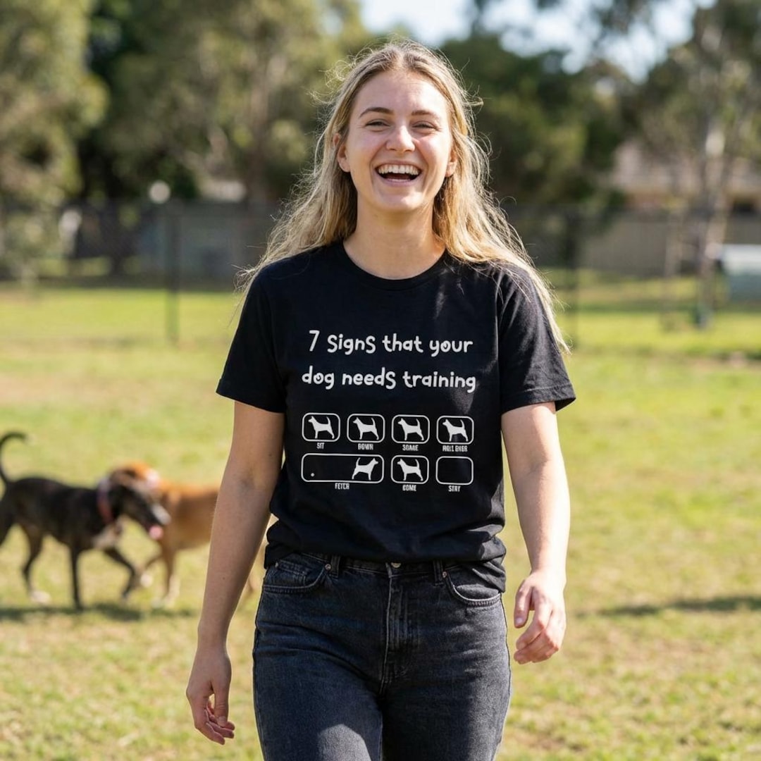 Introducing our "Seven Signs Your Dog Needs Training" Shirt - the perfect addition to any dog owner's wardrobe! This playful and stylish shirt features a humorous and relatable message, making it a great gift for anyone who loves dogs.