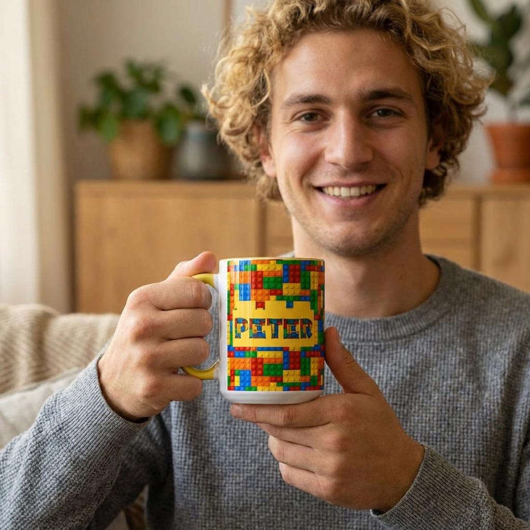 Featuring a vibrant array of colors and building blocks, this mug can be customized with their name, making it uniquely theirs. Crafted from high-quality ceramic, it's designed to withstand the excitement of sips and spills.