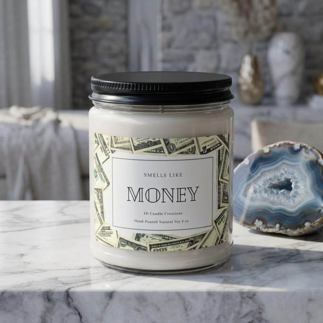 Money Candle Affirmation Gift Home Decor Gift Scented Candles Unique Gifts Dollar Bills Wealth Deodorant Odor Eliminator
