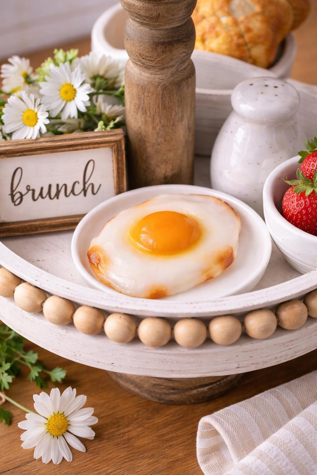Artificial Fried Egg Decor Prop – Realistic Faux Fried Egg for Tiered Trays, Coffee Bar Styling, Kitchen Displays, Photo Prop by 3DCandleCreations