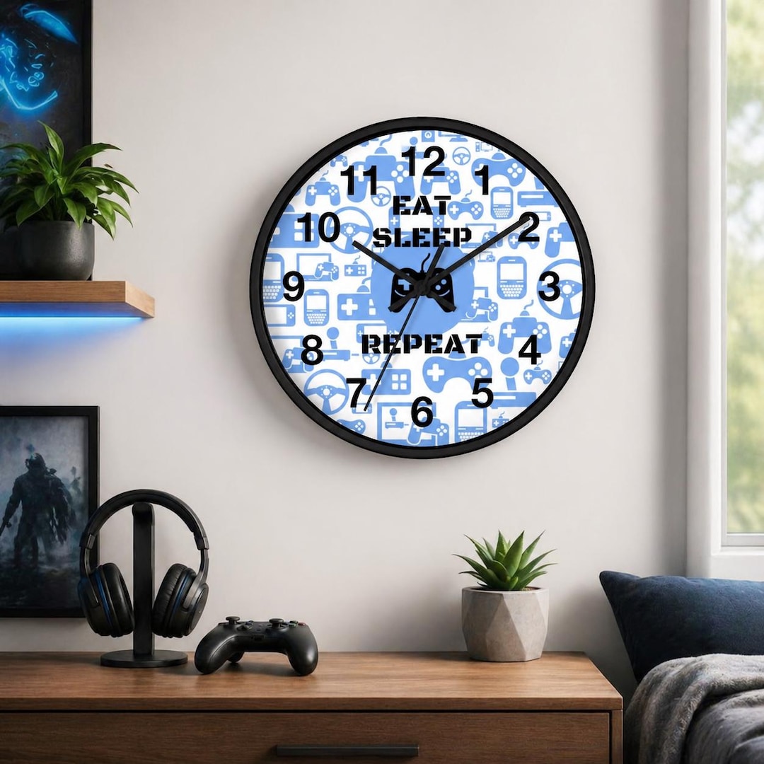 Whether you're shopping for your son, husband, or a friend who loves gaming, our Eat Sleep Game Repeat Clock makes the perfect gift for any occasion. It adds a touch of personality to any space, whether it's a game room, bedroom, or man cave.