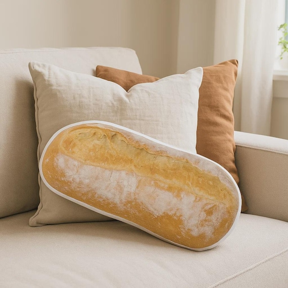 Keywords: bread pillow, food-shaped pillow, quirky home decor, fun pillows, kitchen pillow, kids room pillow, unique gift, food lover gift, fun decorative pillow, soft bread pillow, quirky pillows, breakfast decor, fun gift idea.